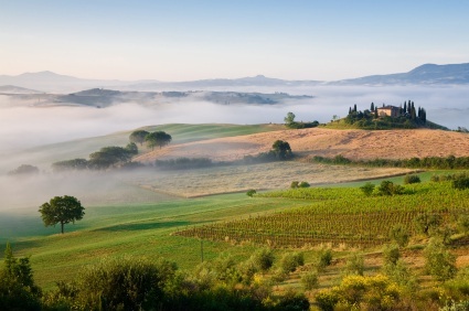 Sometimes Tuscany makes me think of thick soupy clouds hugging and weaving their way across hill-top vineyards with grapes shrouded in morning fog.