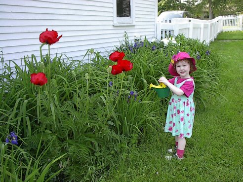 MIDDLEBURY, VT – Watering the flowers. June 2004